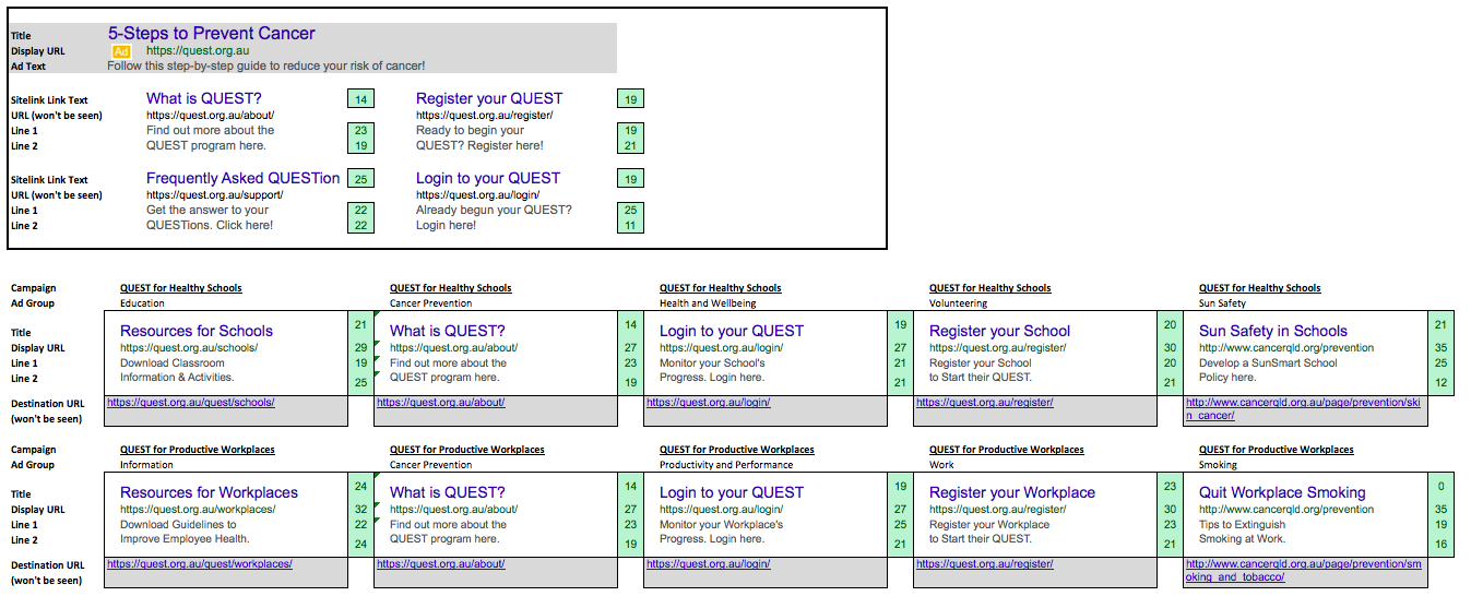 As a component of QUT’s Digital Portfolio, students are required to undertake a digital audit, develop a search engine marketing campaign and social media strategy and create content. The Cancer Council Queensland requested that students build awareness, increase registrations, and educate workplaces and schools about the QUEST program, using maximum promotion for minimum cost.
