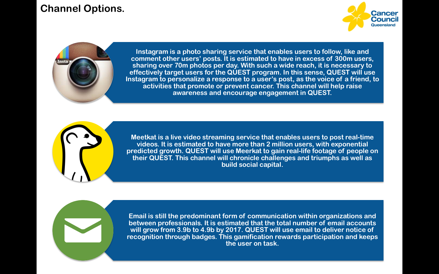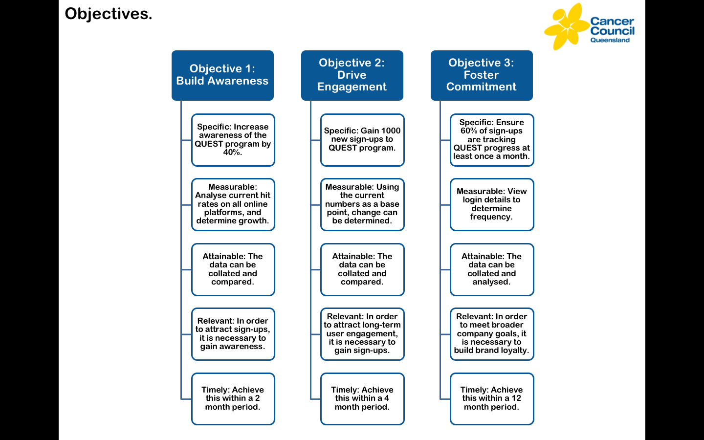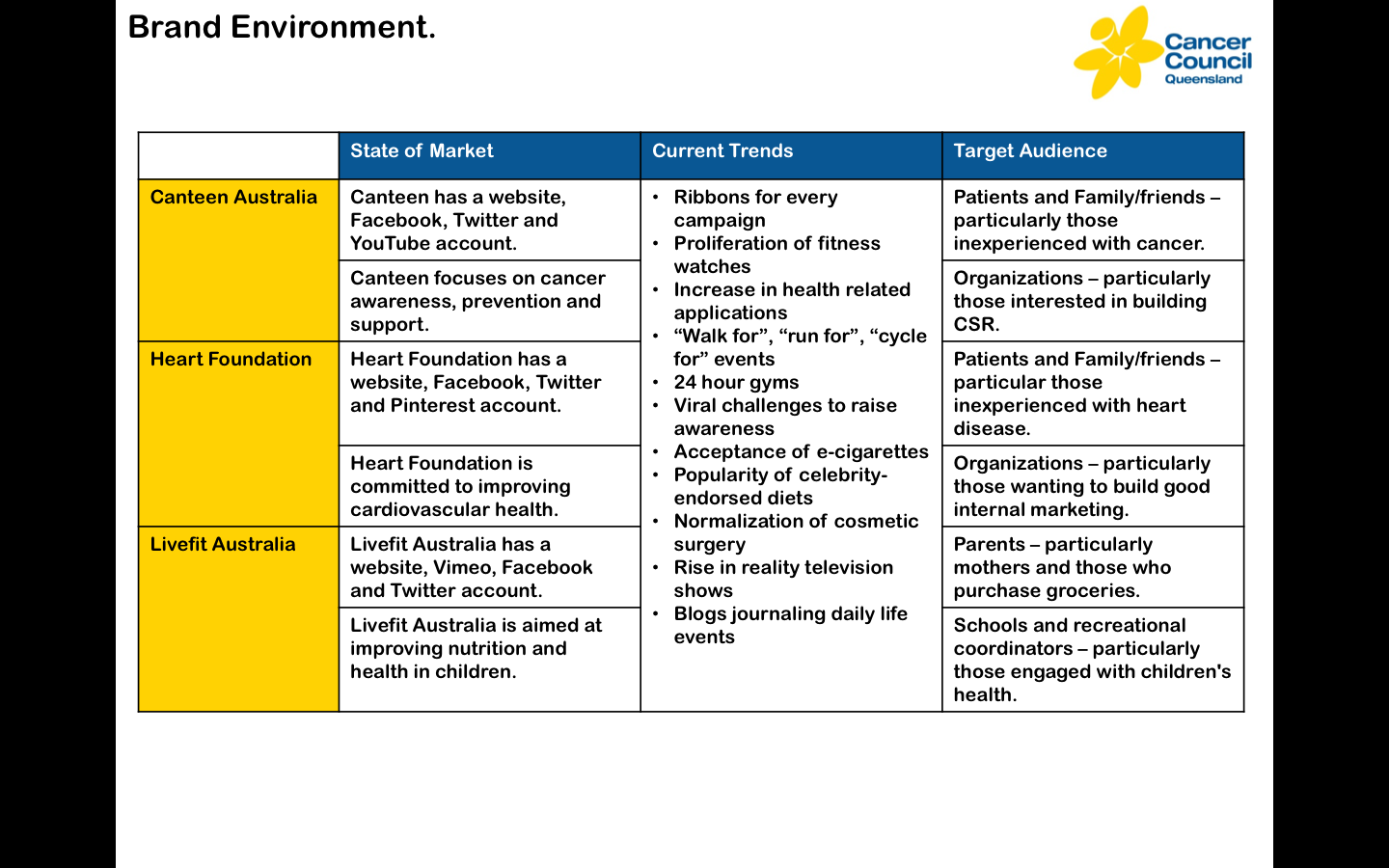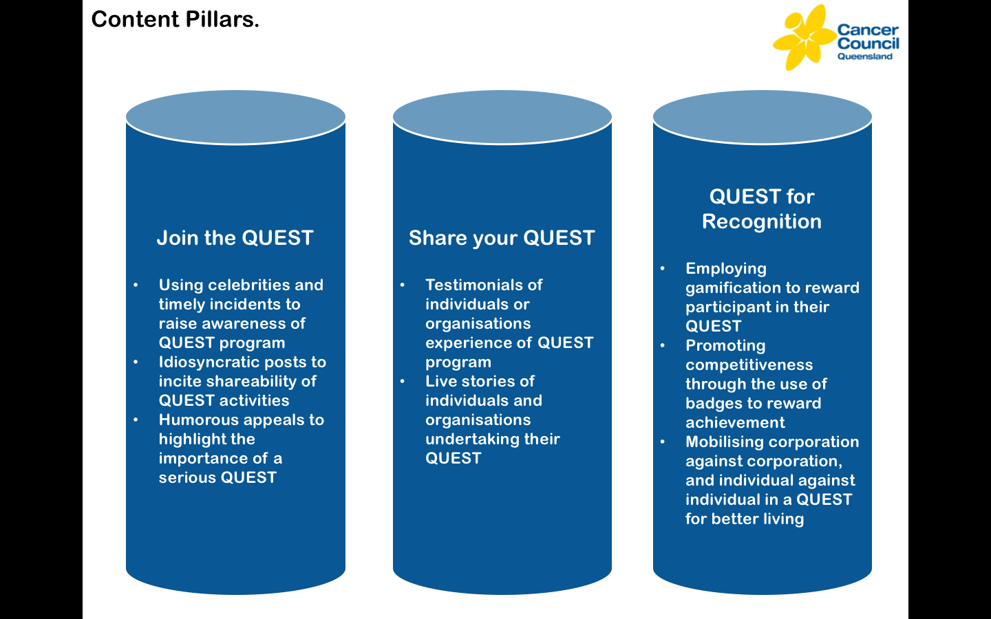 As a component of QUT’s Digital Portfolio, students are required to audit a client’s digital presence, build a digital strategy and create content to be shared. The following content was built in accordance with Cancer Council Queensland’s brief. To see the research behind this, please click here.